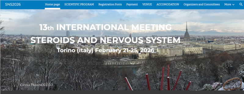 It is our great pleasure to announce the 13th International Meeting, "Steroids and Nervous System," which will be held in February 2026 in Torino, Italy.