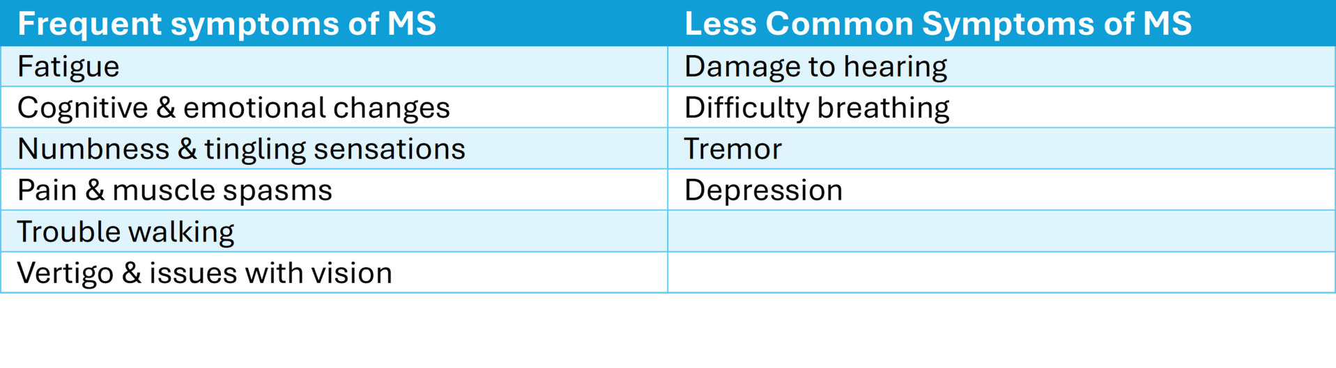 Table 1 Symptoms of MS (National Multiple Sclerosis Society, 2025).