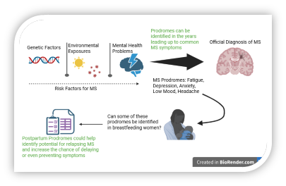 Although there have been no studies that have specifically examined the prodromal stage in breastfeeding women, recent advances in MS prodrome research and postpartum neuroimmunology suggest this could be a promising future direction.