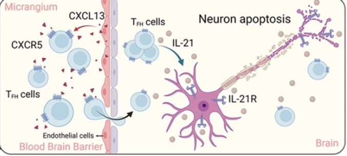 ^ Figure 2: Example of one mechanism mediated by CXCR5-CXCL13 leading to neuronal death, (Zheng et al, 2024)