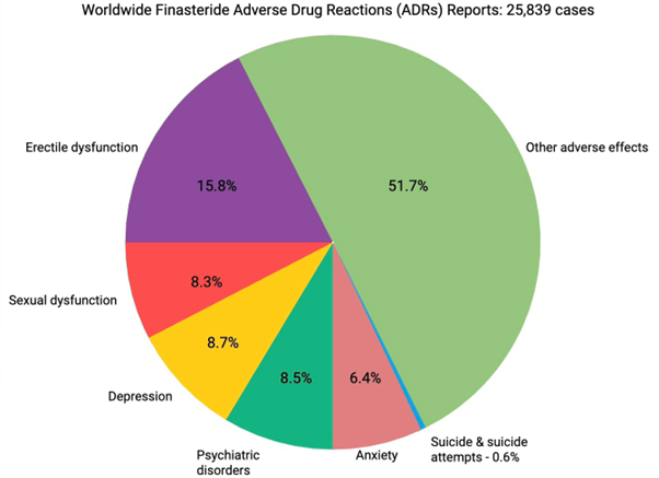 Figure 1: Distribution of Adverse Drug Reactions (ADRs) Reports related to finasteride (PFS Foundation n.d) (Created by using Biorender)