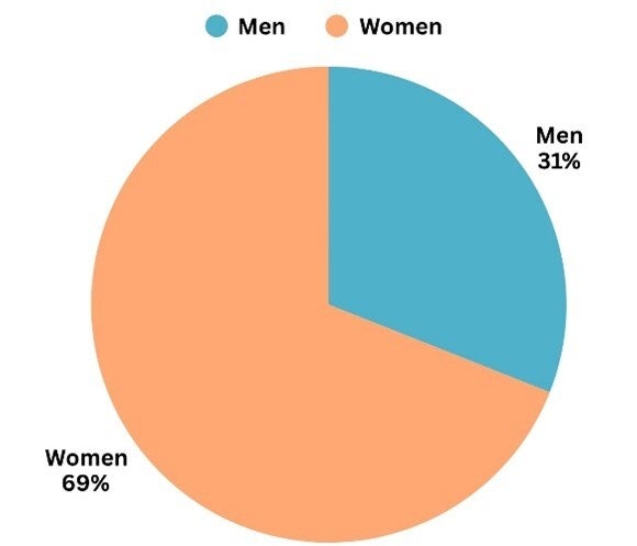 figure 2: Ratio of Men to Women affected by MS. Made with Canva22