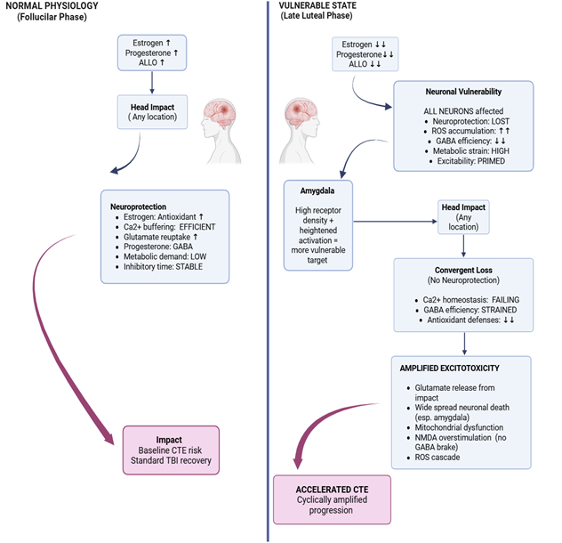 Figure 2: Late Luteal Phase CTE Vulnerability: Pathophysiology (Created in https://BioRender.com)