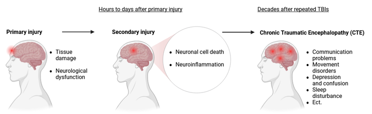 Figure 1 shows what happens in the primary and secondary injury phase of TBI and after repeated TBIs over the years.