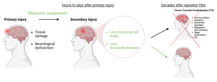 Many studies have investigated the efficacy of post-TBI melatonin supplementation, but no study has yet tested whether melatonin supplementary after primary injury lowers the later-life risk of CTE in individuals with repeated mild TBIs over many years.